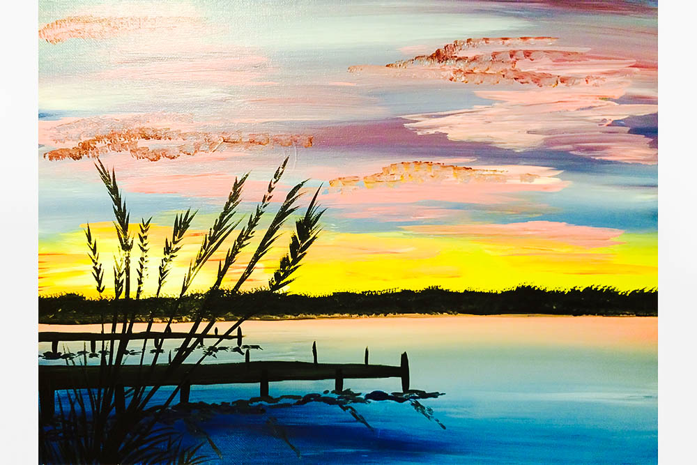 Sunset glow at the weir. On sunset glow at the weir above: Enjoy this simple tutorial and create both a sunrise and a sunset on the same piece of paper. You'll learn color mixing and how to create color transitions. I like painting weirs because the sheer netting and poles.